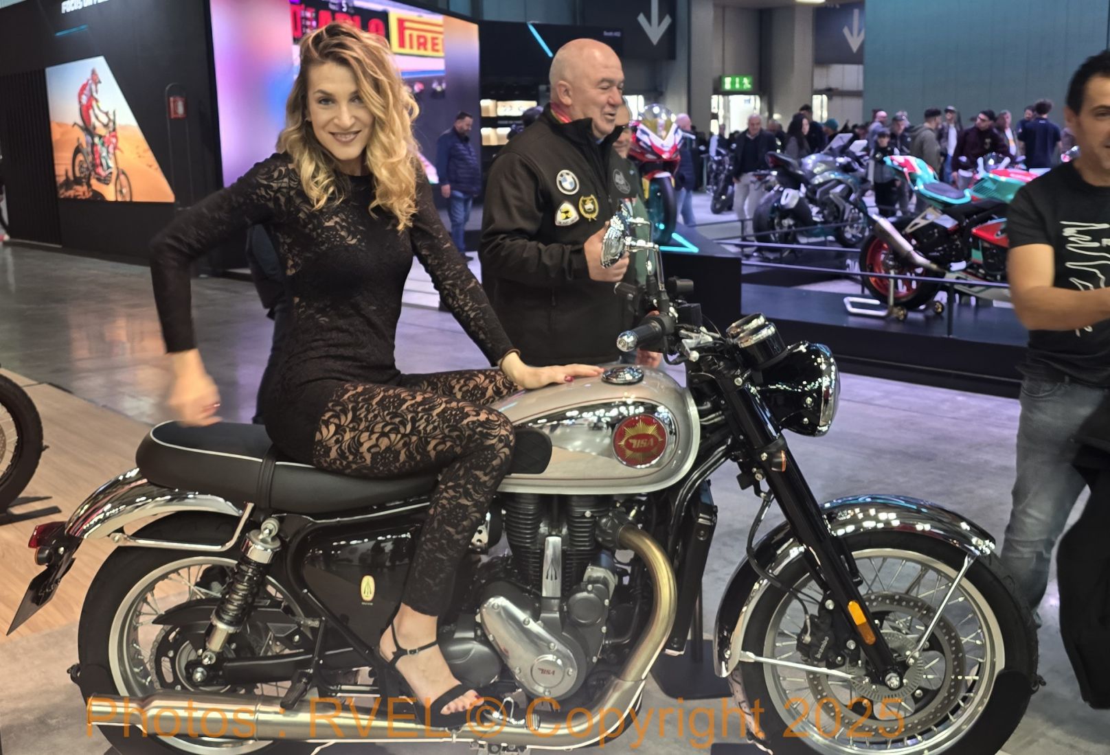 Et avouons-le, que serait un salon moto en Italie sans cette touche italienne glamour et passionnée ? Les motos attirent le regard, mais elles prennent toute leur dimension quand elles sont mises en valeur… et ça, nos hôtesses savent le faire mieux que quiconque.
