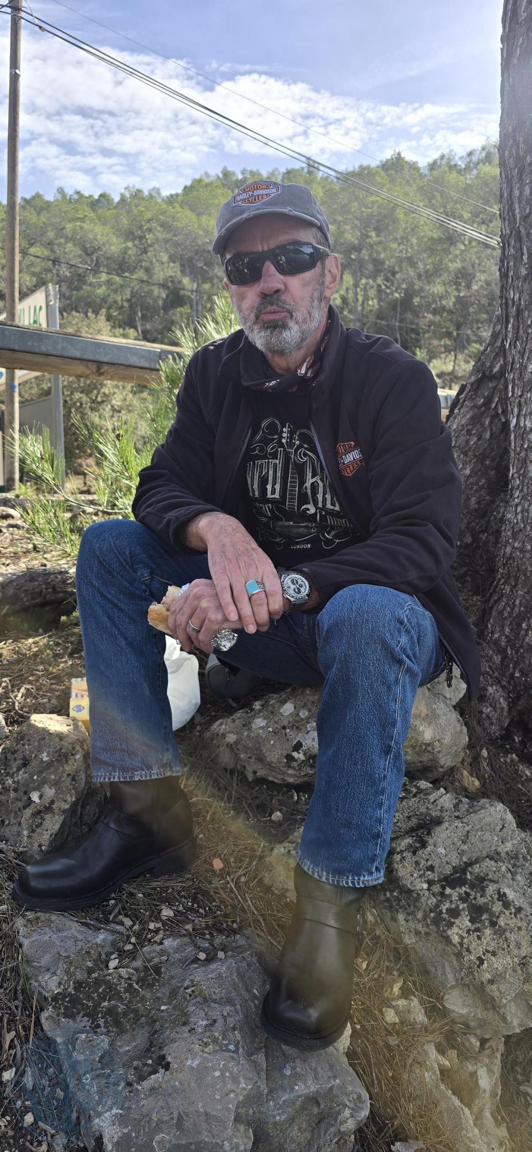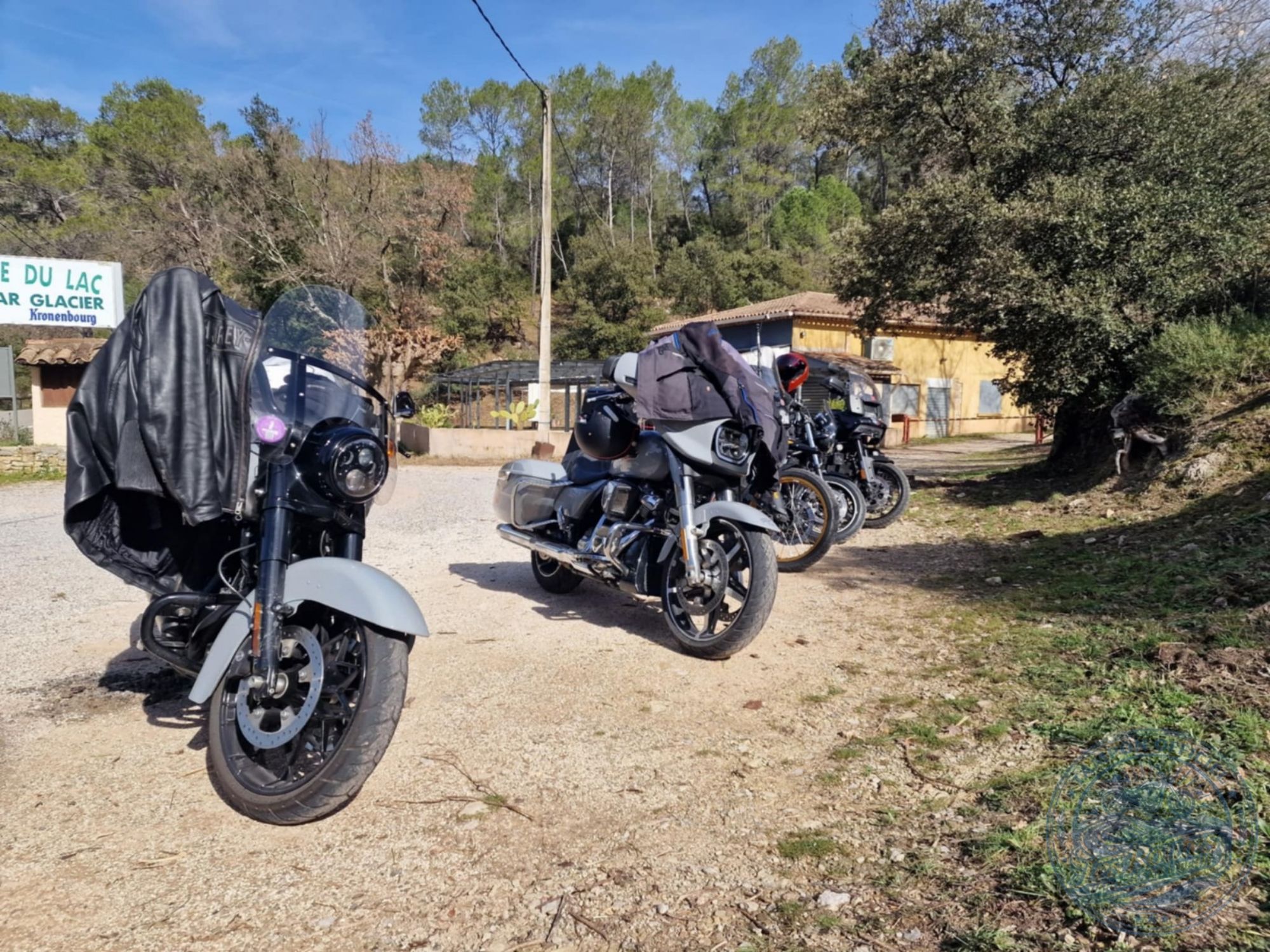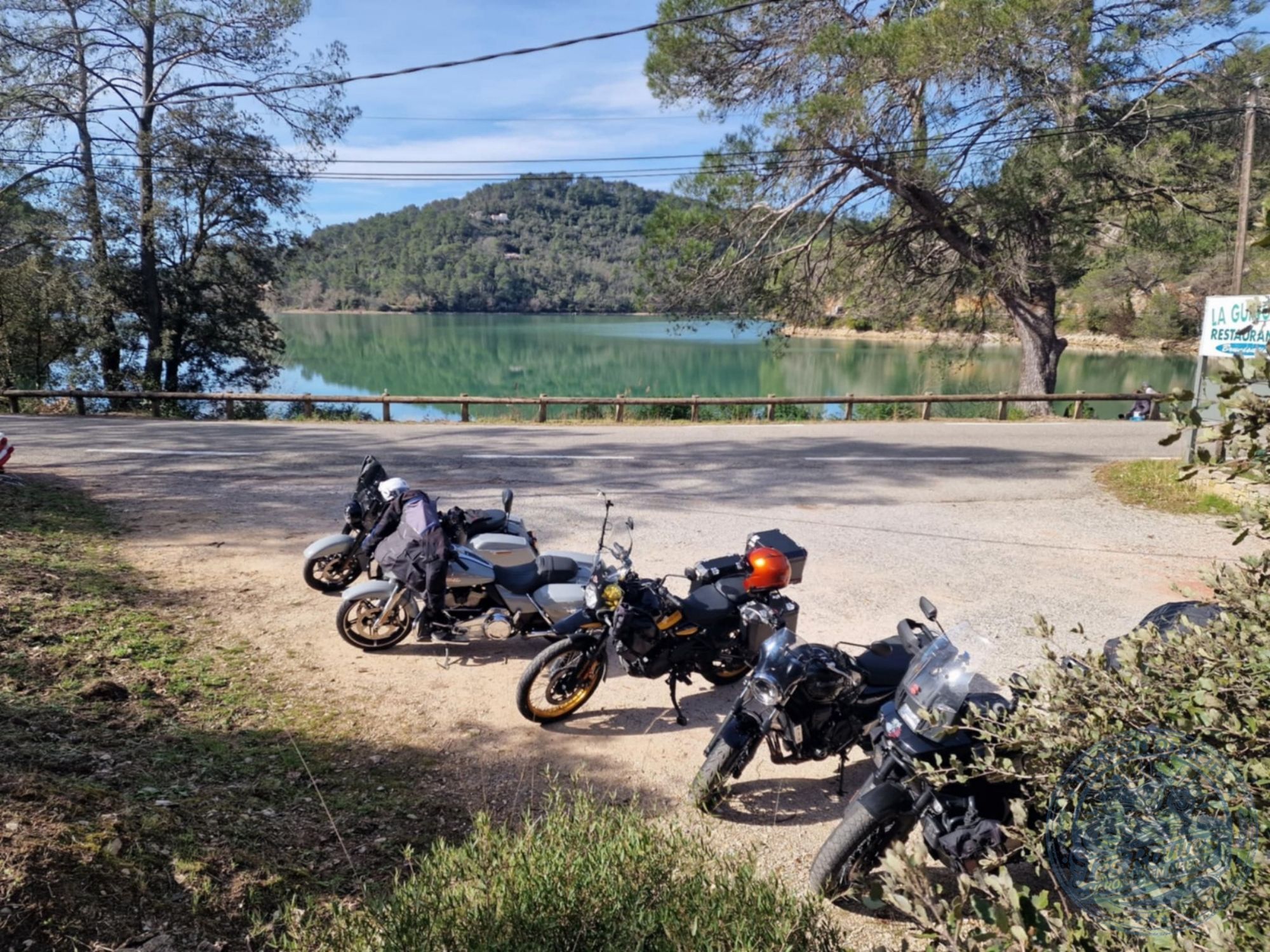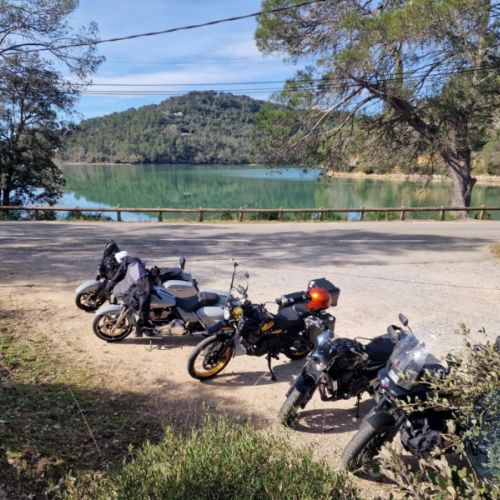 Nous marquerons une pause gourmande avec un pique-nique en bord de lac. Un moment simple, les motos alignées à l’ombre, le clapotis de l’eau en fond sonore et les sacs à dos qui se transforment en buffet improvisé.